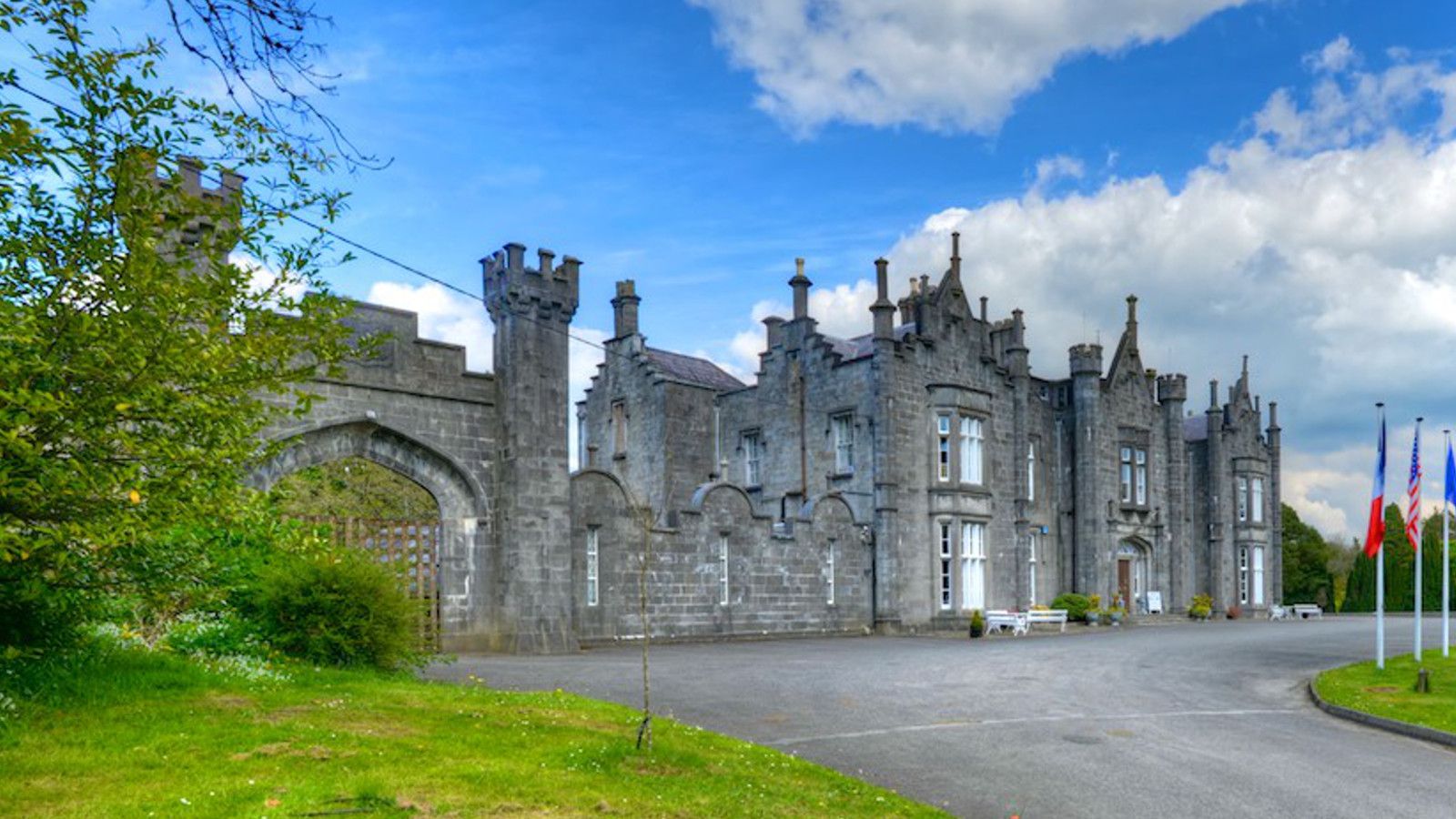 ‘Belleek Castle was built between 1825 and 1831, on the site of a medieval abbey, one of four along the River Moy. Belleek was commissioned by Sir Arthur Francis Knox-Gore. The manor house was designed by the prolific architect John Benjamin Keanes, and the neo-gothic architecture met the taste of the time, when medieval styles became fashionable. The Knox-Gores lived in Belleek until the early 1940’s.’