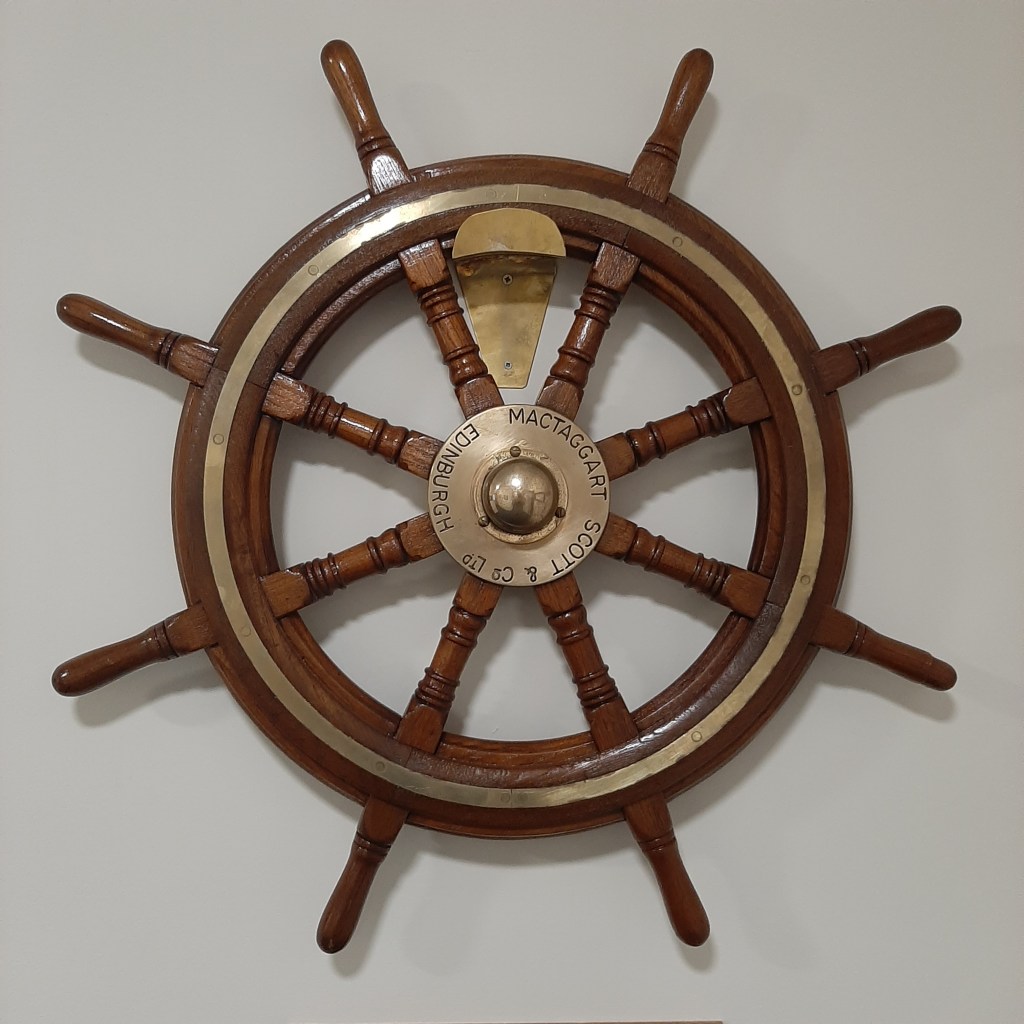 Another interesting plaque accompanies LÉ Maev’s wheel, it is a brief listing of the battle honors of this venerable warship when she proudly bore the name HMS Oxlip.