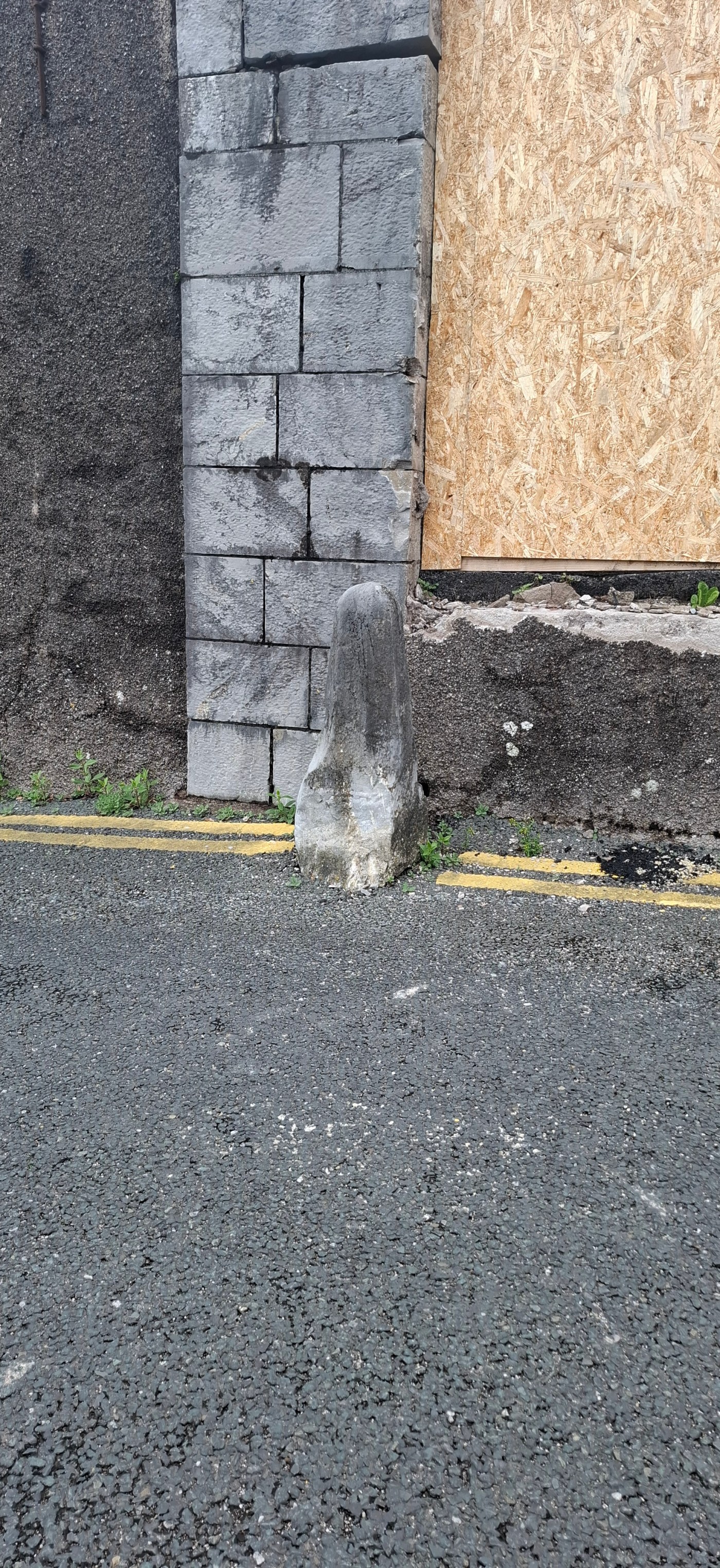 While passing Collins Barracks, Cork this morning, I noticed a fine jostle stone standing guard where someone, or something, has breached a massive hole into a section of the wall. The plywood shuttering is fairly new, the stone is very old. A jostle stone or chasse-roue (wheel chaser) was an innovation born of necessity in a time when trade in towns and cities relied on horse and cart. They were often placed at the entrace to gateways into courtyards or at the corners of buildings on narrow streets, to protect the stone work from the passing wheels. A sacrificial stone for commerce.