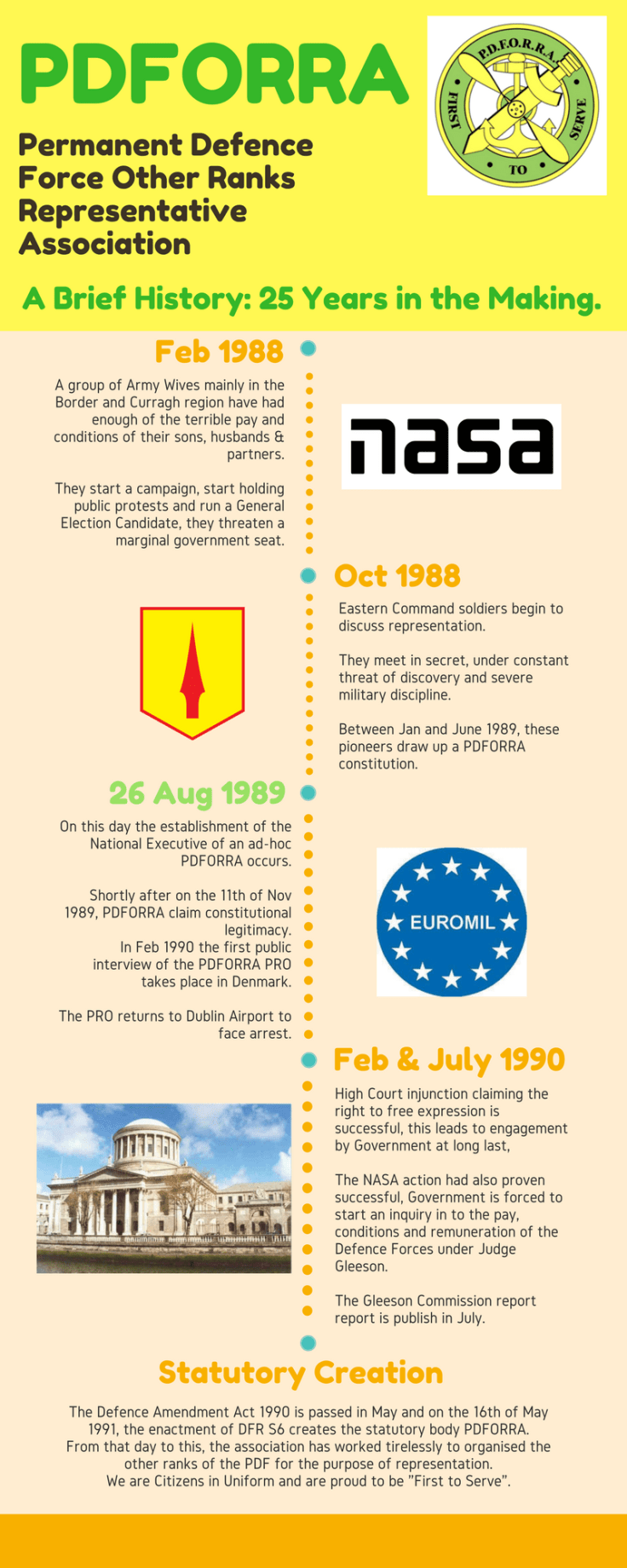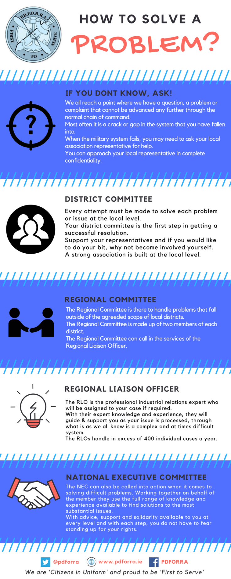 The following are a series of infographics I created for the use of the Permanent Defence Force Other Ranks Representative Association (PDFORRA) in my role as a volunteer local district representative.