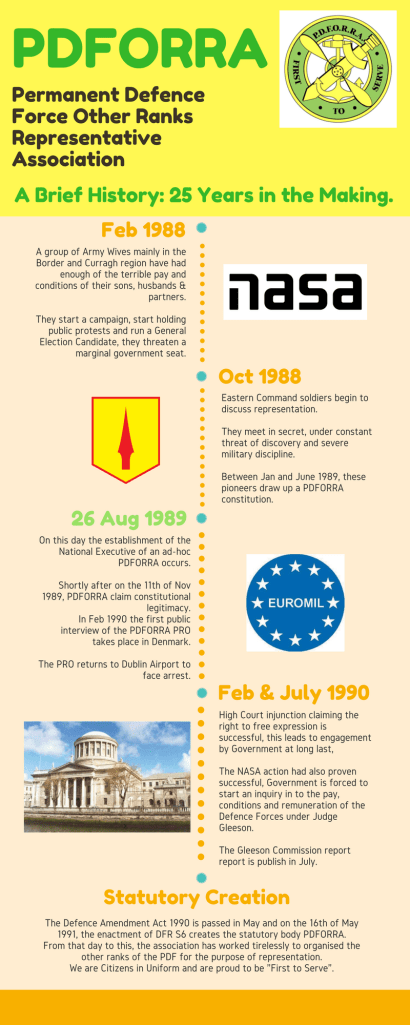 I was very proud to have been a member of PDFORRA for my entire career in the Defence Forces, and I was privileged to have also been an elected representative for 18 years.